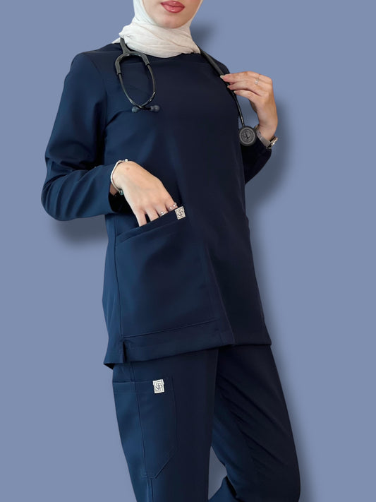 سكراب كحلي بأكمام طويلة من مجموعة Effortless Elegance Line